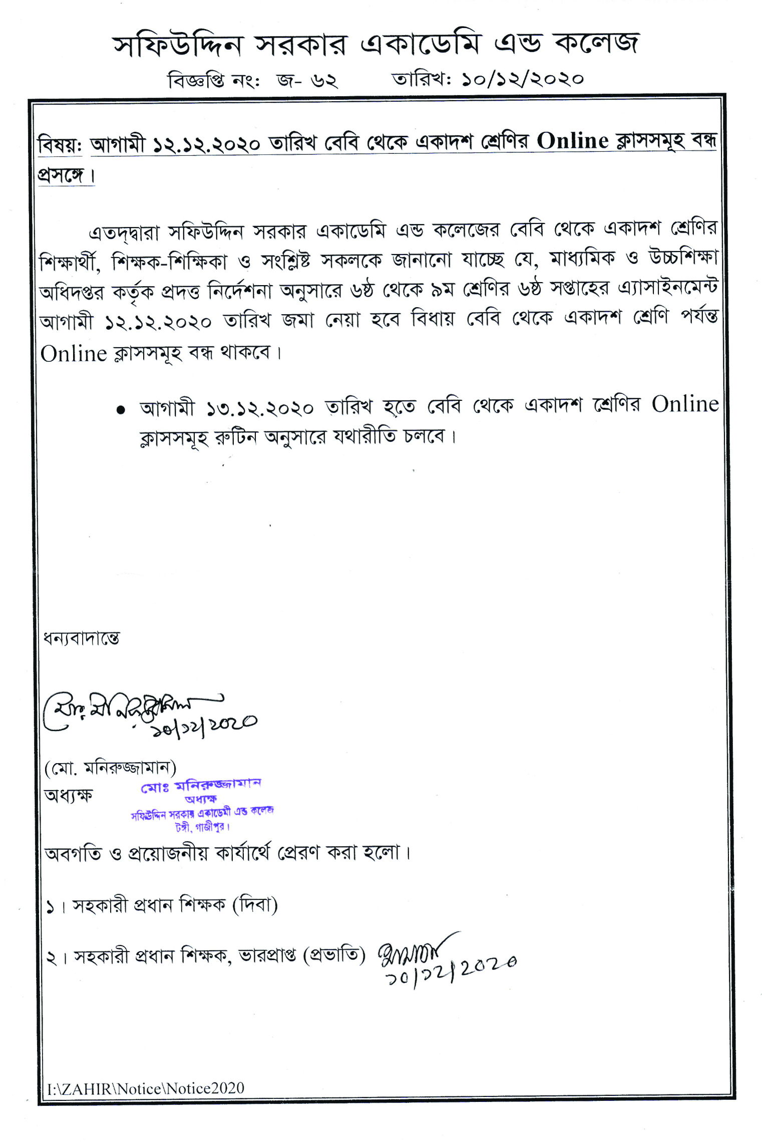 আগামী ১২.১২.২০২০ তারিখ বেবি থেকে একাদশ শ্রেণির Online ক্লাসসমূহ বন্ধ প্রসঙ্গে। Published on Thursday, December 10, 2020