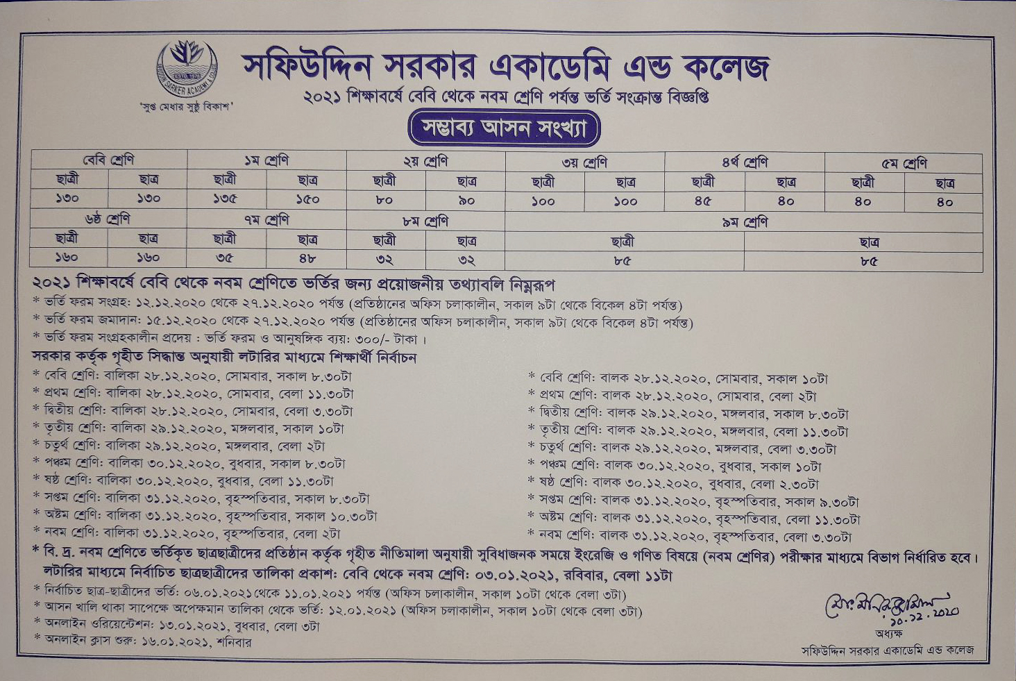 ২০২১ শিক্ষাবর্ষে বেবি থেকে নবম শ্রেণি পর্যন্ত ভর্তি সংক্রান্ত বিজ্ঞপ্তি Published on Saturday, December 12, 2020