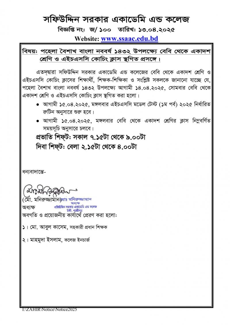 পহেলা বৈশাখ বাংলা নববর্ষ ১৪৩২ উপলক্ষ্যে বেবি থেকে একাদশ শ্রেণি ও এইচএসসি কোচিং ক্লাস স্থগিত প্রসঙ্গে। Published on Sunday, April 13, 2025