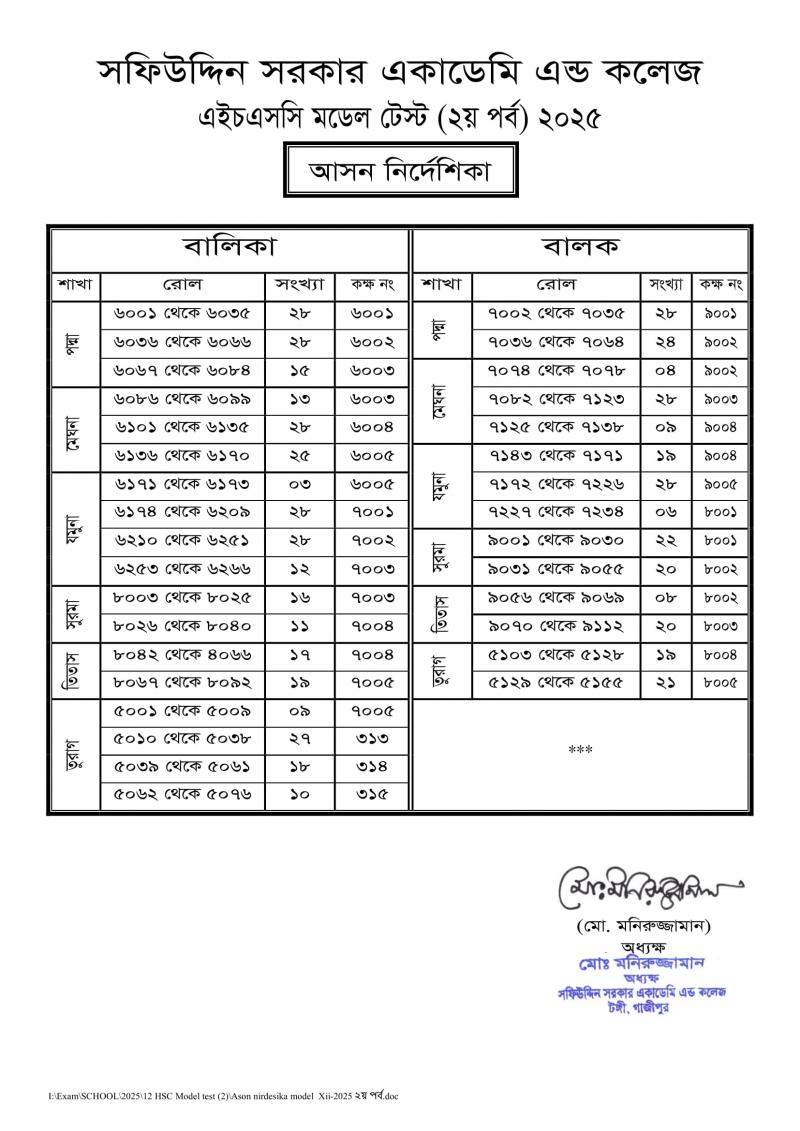 এইচএসসি মডেল টেস্ট (২য় পর্ব) ২০২৫ এর আসন নির্দেশিকা Published on Thursday, May 15, 2025