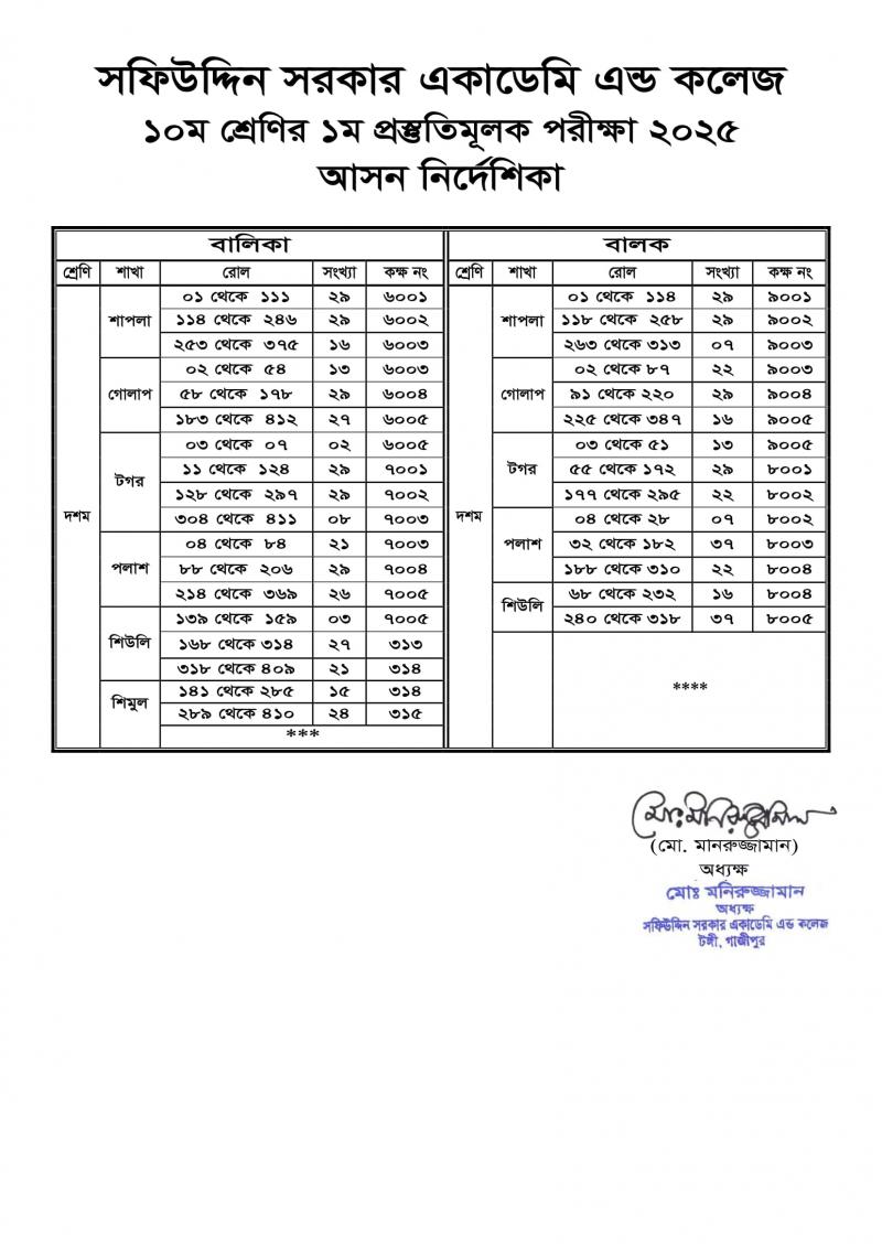 দশম শ্রেণির ১ম প্রস্তুতিমূলক পরীক্ষা ২০২৫ এর আসন নির্দেশিকা Published on Thursday, May 15, 2025