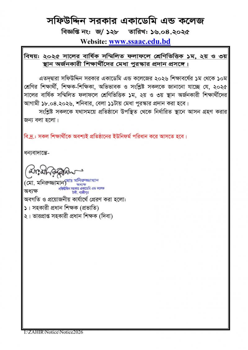 ২০২৫ সালের বারà§à¦·à¦¿à¦• সমà§à¦®à¦¿à¦²à¦¿à¦¤ ফলাফলে শà§à¦°à§‡à¦£à¦¿à¦à¦¿à¦¤à§à¦¤à¦¿à¦• ১ম, ২য় ও à§©à§Ÿ সà§à¦¥à¦¾à¦¨ অরà§à¦œà¦¨à¦•ারী শিকà§à¦·à¦¾à¦°à§à¦¥à§€à¦¦à§‡à¦° মেধা পà§à¦°à¦¸à§à¦•ার পà§à¦°à¦¦à¦¾à¦¨ পà§à¦°à¦¸à¦™à§à¦—ে।