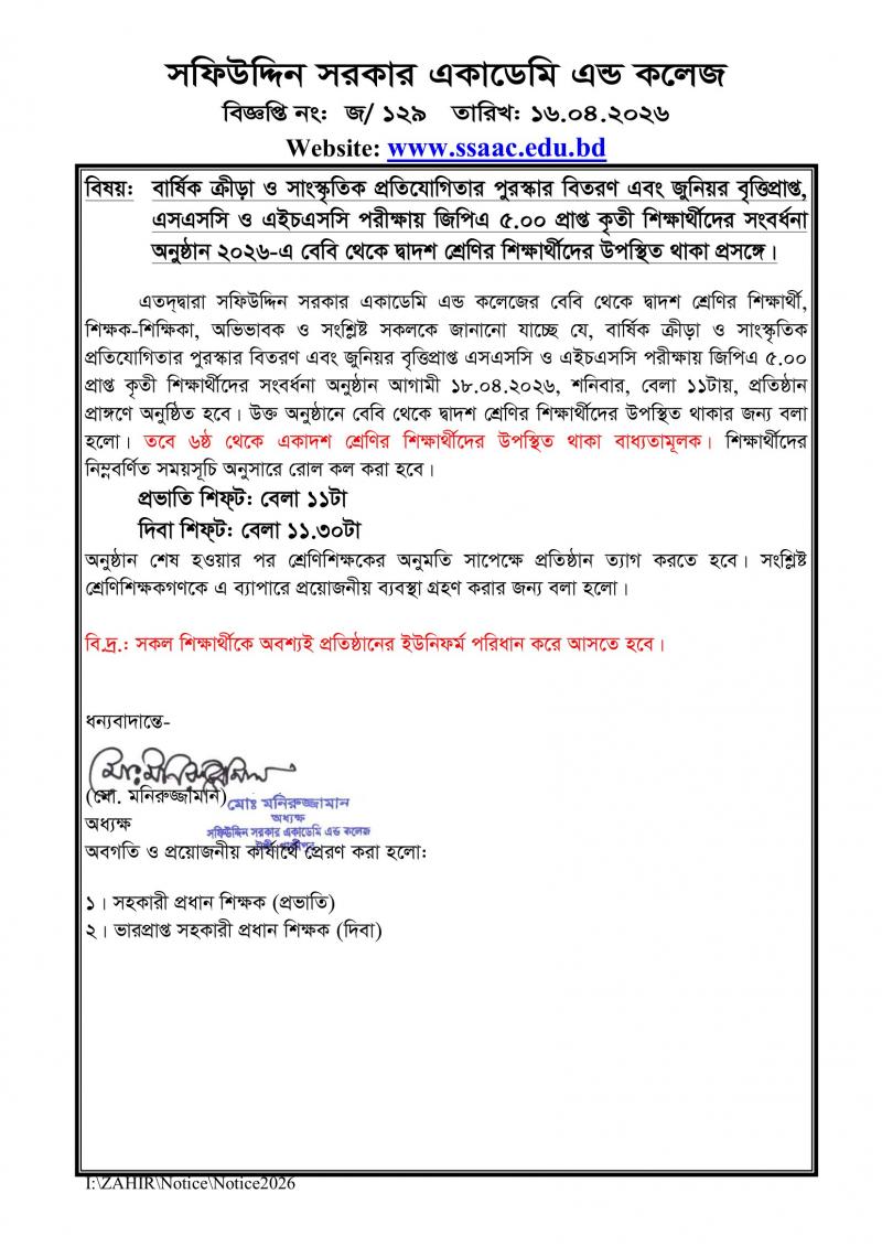বারà§à¦·à¦¿à¦• কà§à¦°à§€à§œà¦¾ ও সাংসà§à¦•ৃতিক পà§à¦°à¦¤à¦¿à¦¯à§‹à¦—িতার পà§à¦°à¦¸à§à¦•ার বিতরণ à¦à¦¬à¦‚ জà§à¦¨à¦¿à§Ÿà¦° বৃতà§à¦¤à¦¿à¦ªà§à¦°à¦¾à¦ªà§à¦¤, à¦à¦¸à¦à¦¸à¦¸à¦¿ ও à¦à¦‡à¦šà¦à¦¸à¦¸à¦¿ পরীকà§à¦·à¦¾à§Ÿ জিপিঠ৫.০০ পà§à¦°à¦¾à¦ªà§à¦¤ কৃতী শিকà§à¦·à¦¾à¦°à§à¦¥à§€à¦¦à§‡à¦° সংবরà§à¦§à¦¨à¦¾ অনà§à¦·à§à¦ ান ২০২৬-ঠবেবি থেকে দà§à¦¬à¦¾à¦¦à¦¶ শà§à¦°à§‡à¦£à¦¿à¦° শিকà§à¦·à¦¾à¦°à§à¦¥à§€à¦¦à§‡à¦° উপসà§à¦¥à¦¿à¦¤ থাকা পà§à¦°à¦¸à¦™à§à¦—ে।