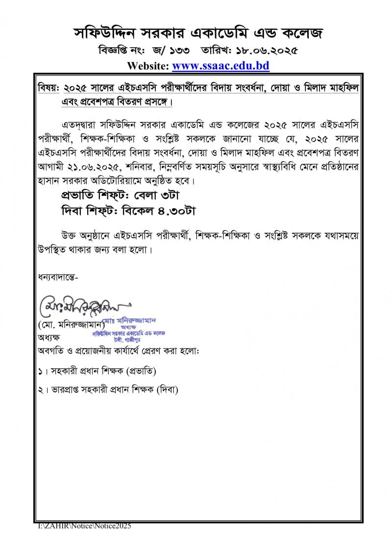 ২০২৫ সালের এইচএসসি পরীক্ষার্থীদের বিদায় সংবর্ধনা, দোয়া ও মিলাদ মাহফিল এবং প্রবেশপত্র বিতরণ প্রসঙ্গে। Published on Wednesday, June 18, 2025