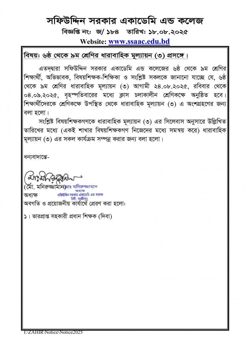 ৬ষ্ঠ থেকে ৯ম শ্রেণির ধারাবাহিক মূল্যায়ন (৩) প্রসঙ্গে। Published on Tuesday, August 19, 2025