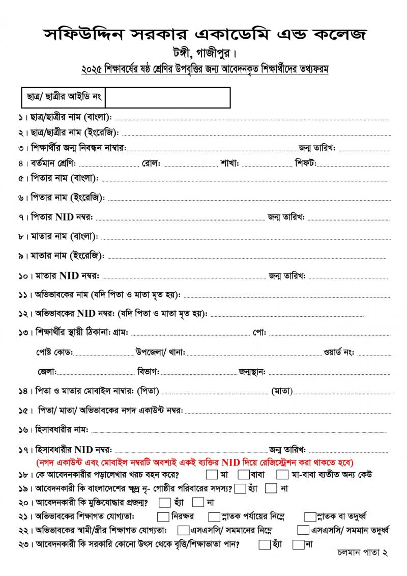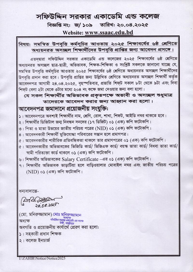সমন্বিত উপবৃত্তি কর্মসূচির আওতায় ২০২৫ শিক্ষাবর্ষের ৬ষ্ঠ শ্রেণিতে অধ্যয়নরত অসচ্ছল শিক্ষার্থীদের উপবৃত্তি প্রাপ্তির জন্য আবেদন প্রসঙ্গে। Published on Sunday, April 20, 2025
