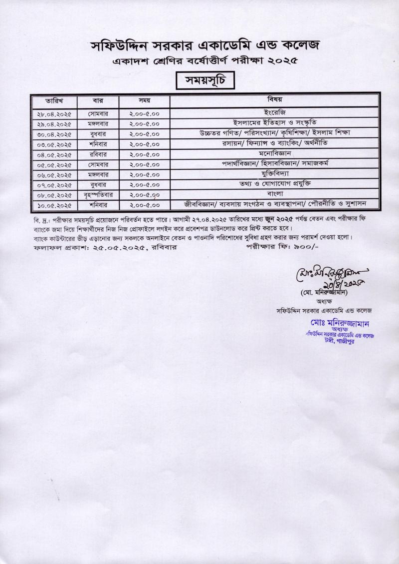 একাদশ শ্রেণির বর্ষোত্তীর্ণ পরীক্ষা ২০২৫ এর সময়সূচি Published on Sunday, April 20, 2025