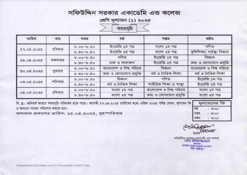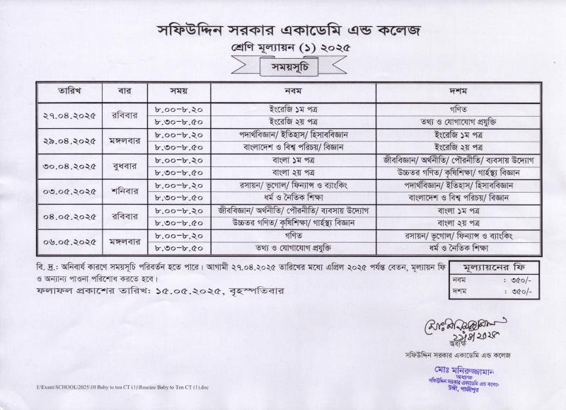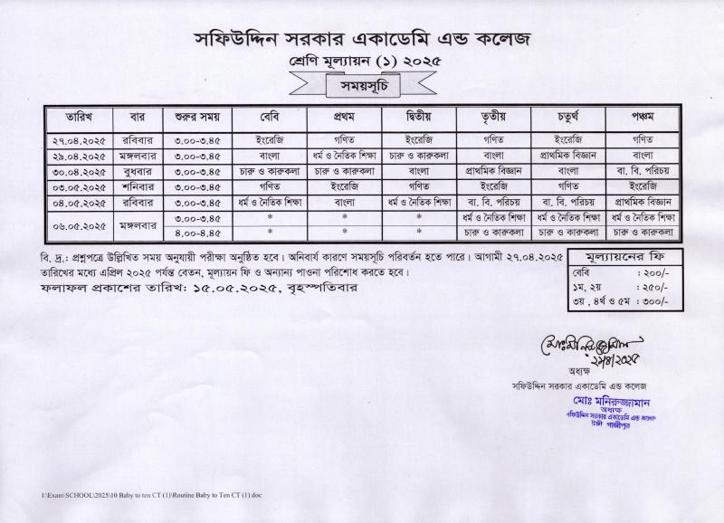 বেবি থেকে ১০ম শ্রেণির শ্রেণি মূল্যায়ন (১) ২০২৫ এর সময়সূচি Published on Monday, April 21, 2025