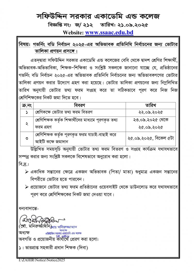 গভর্নিং বডি নির্বাচন ২০২৫-এর অভিভাবক প্রতিনিধি নির্বাচনের জন্য ভোটার তালিকা প্রণয়ন প্রসঙ্গে। Published on Sunday, September 21, 2025