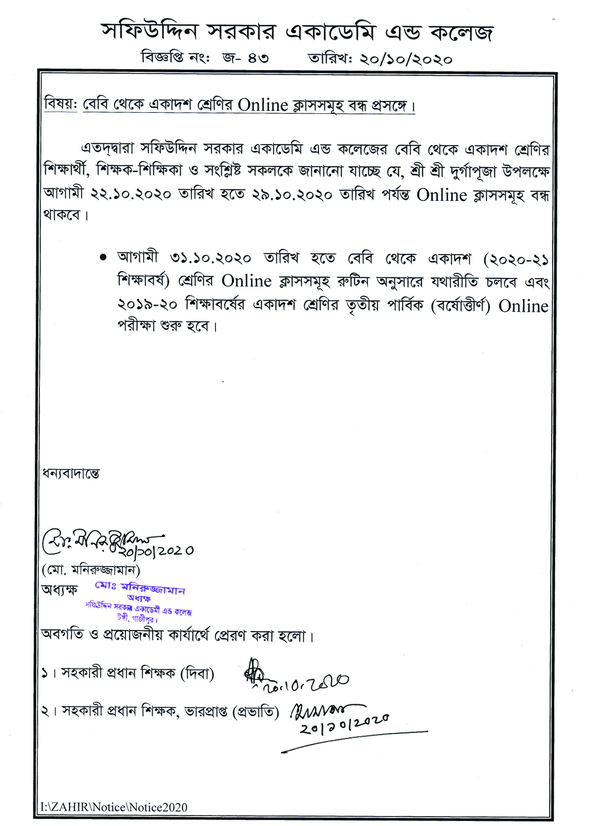 শ্রী শ্রী দুর্গাপূজা উপলক্ষে বেবি থেকে একাদশ শ্রেণির Online ক্লাসসমূহ বন্ধ প্রসঙ্গে। Published on Wednesday, October 21, 2020