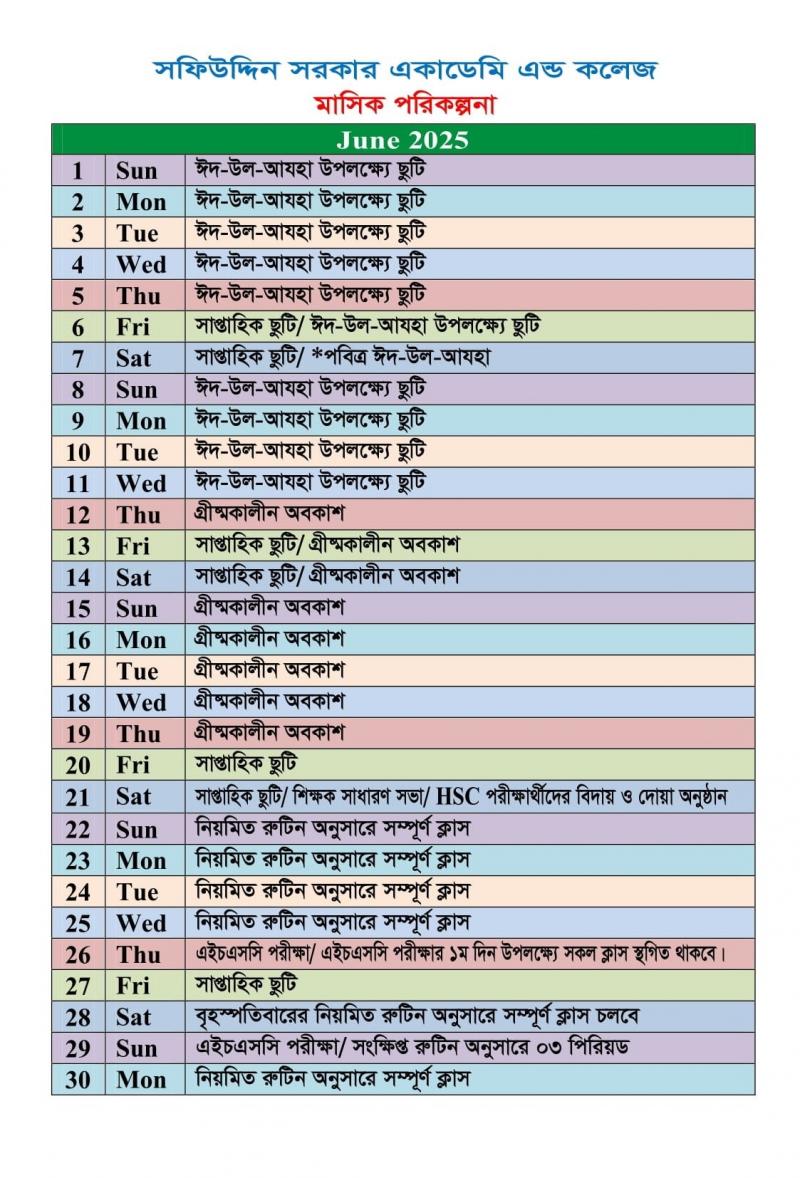 জুন ২০২৫ এর মাসিক পরিকল্পনা Published on Sunday, June 22, 2025