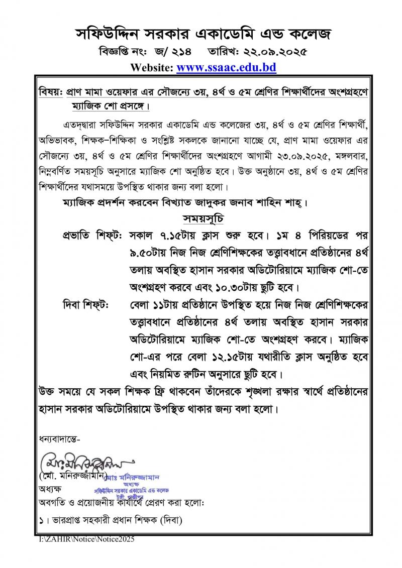 প্রাণ মামা ওয়েফার এর সৌজন্যে ৩য়, ৪র্থ ও ৫ম শ্রেণির শিক্ষার্থীদের অংশগ্রহণে ম্যাজিক শো প্রসঙ্গে। Published on Monday, September 22, 2025