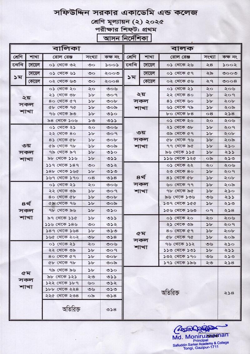 শ্রেণি মূল্যায়ন (২) এর আসন নির্দেশিকা ২০২৫ Published on Thursday, July 24, 2025