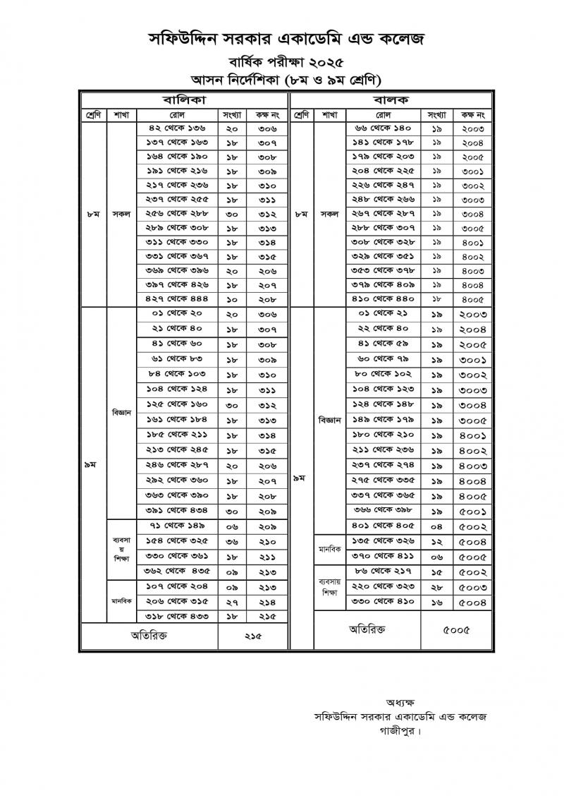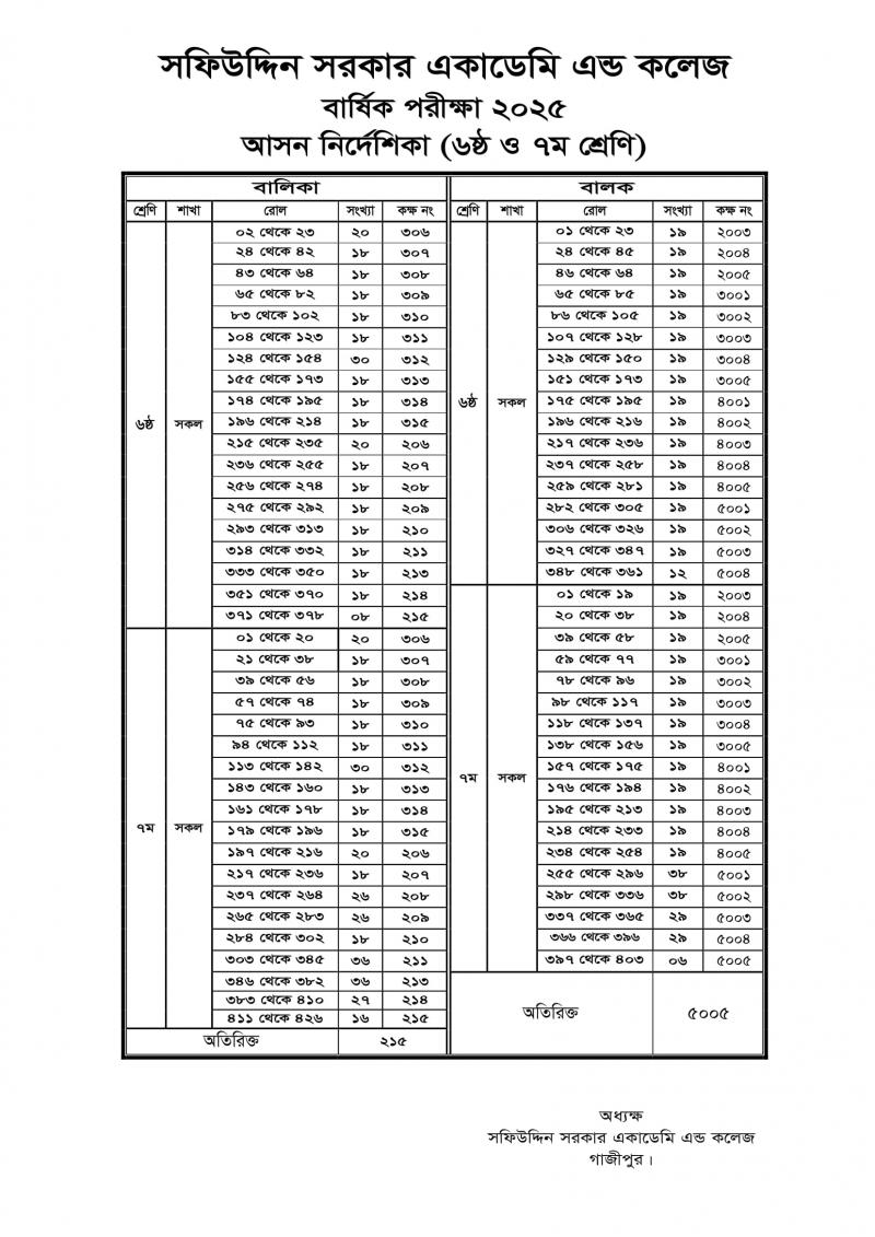 ৬ষ্ঠ থেকে ৯ম শ্রেণির বার্ষিক পরীক্ষা ২০২৫ এর আসন নির্দেশিকা Published on Monday, November 24, 2025