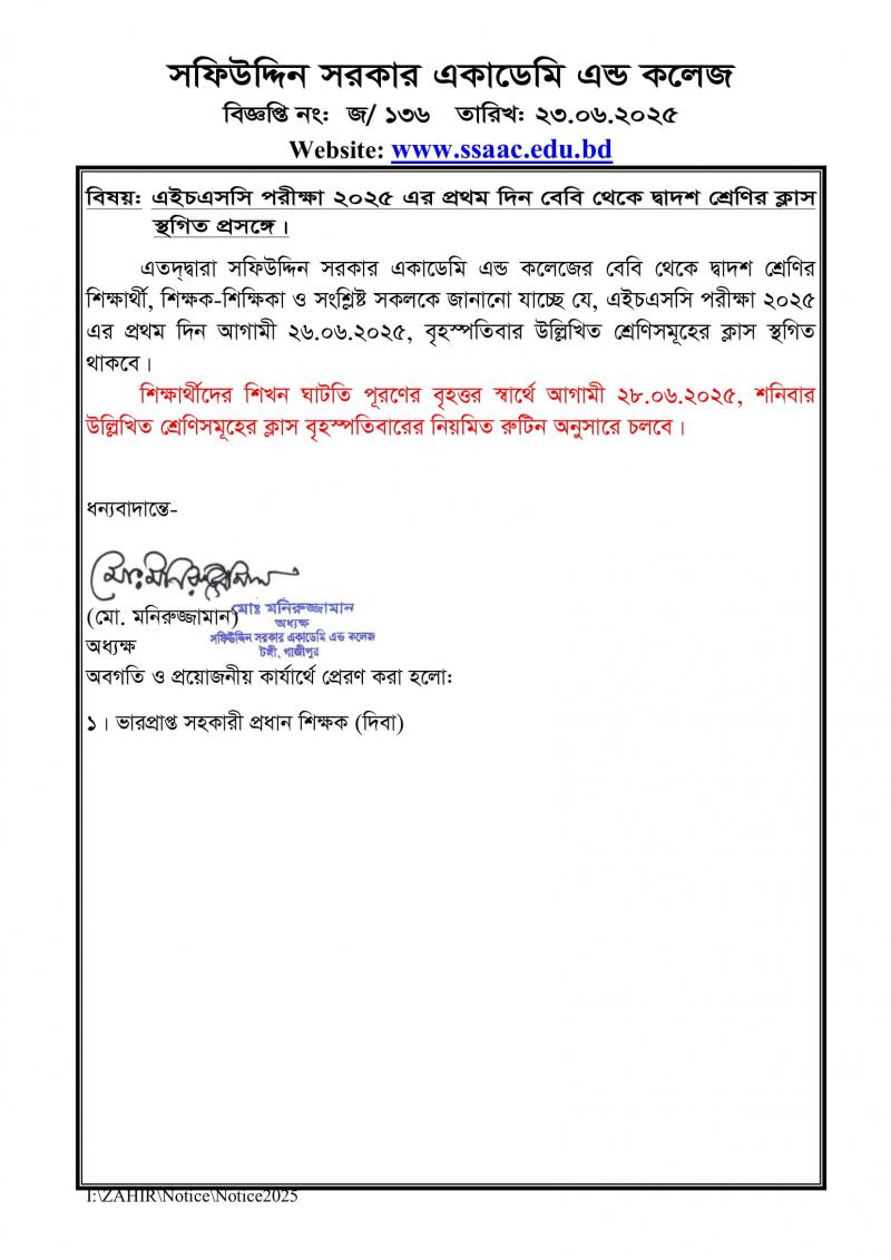 এইচএসসি পরীক্ষা ২০২৫ এর প্রথম দিন বেবি থেকে দ্বাদশ শ্রেণির ক্লাস স্থগিত প্রসঙ্গে। Published on Wednesday, June 25, 2025