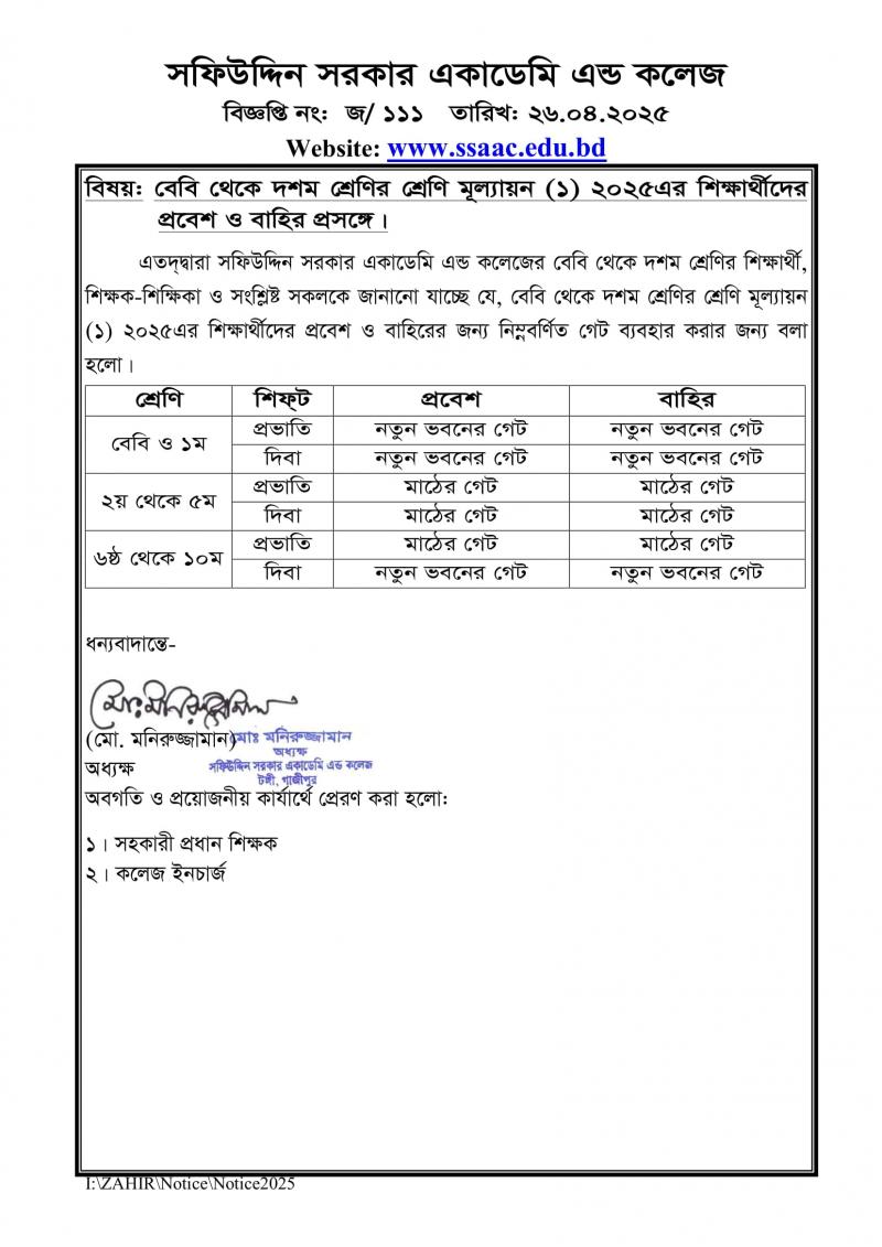 বেবি থেকে দশম শ্রেণির শ্রেণি মূল্যায়ন (১) ২০২৫এর শিক্ষার্থীদের প্রবেশ ও বাহির প্রসঙ্গে। Published on Saturday, April 26, 2025