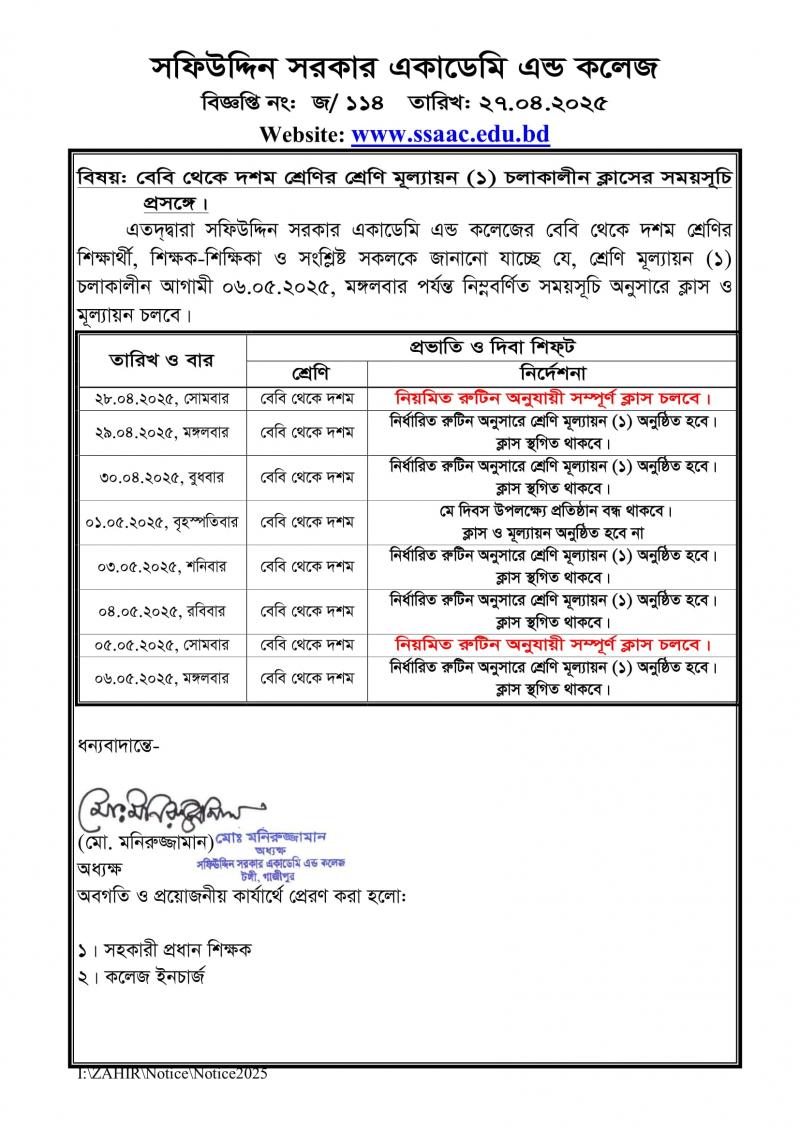 বেবি থেকে দশম শ্রেণির শ্রেণি মূল্যায়ন (১) চলাকালীন ক্লাসের সময়সূচি প্রসঙ্গে। Published on Sunday, April 27, 2025
