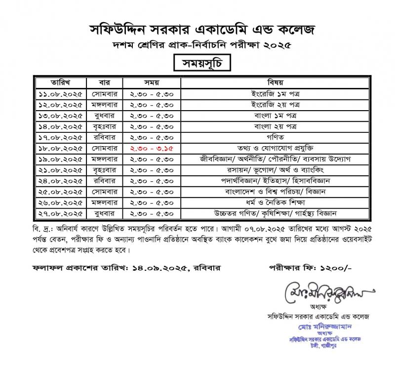 এসএসসি প্রাক নির্বাচনি পরীক্ষা ২০২৫ এর সময়সূচি Published on Tuesday, July 29, 2025
