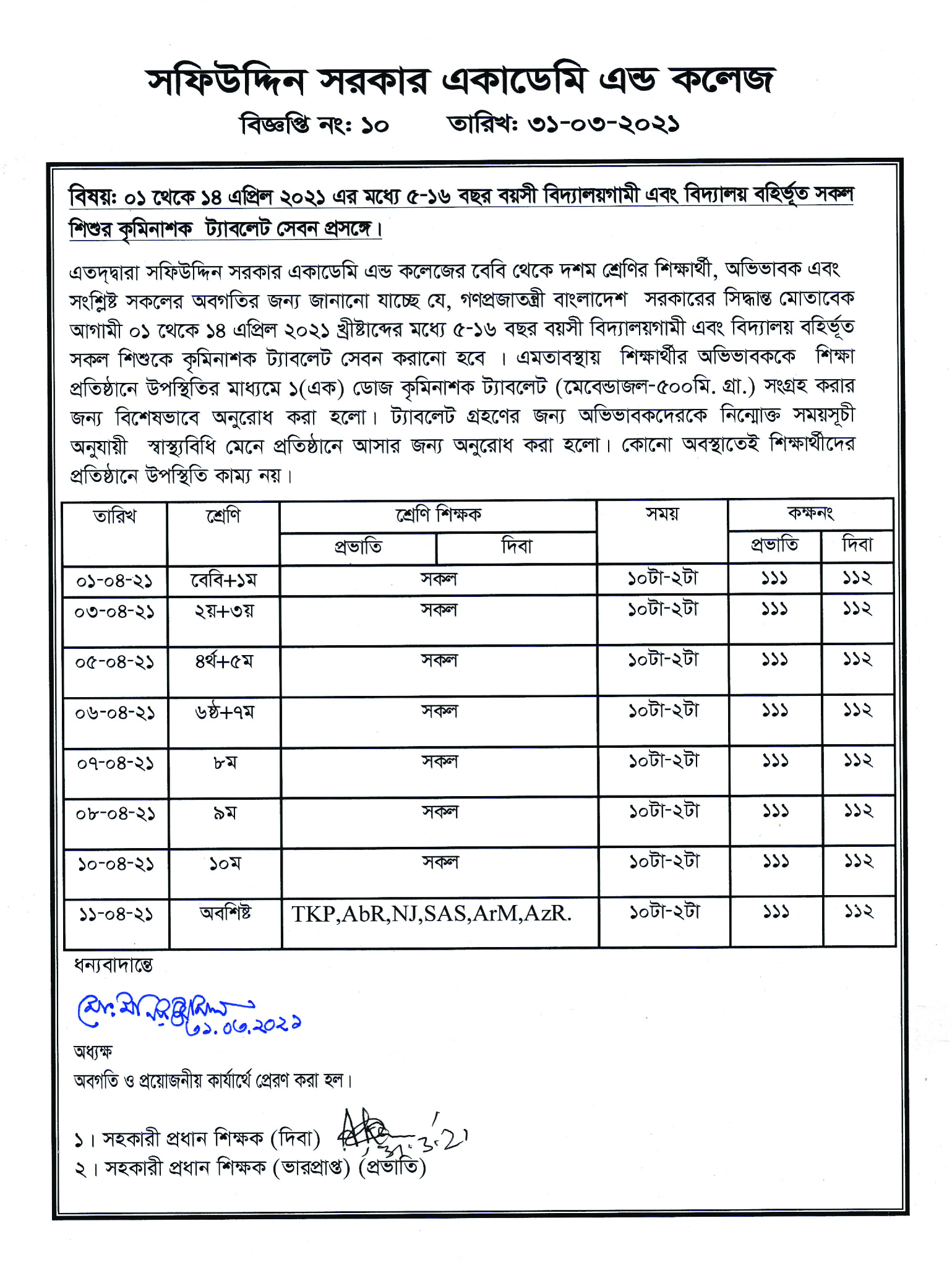 ৫ থেকে ১৬ বছর বয়সী শিশুদের কৃমিনাশক টেবলেট সেবন প্রসঙ্গে। Published on Wednesday, March 31, 2021