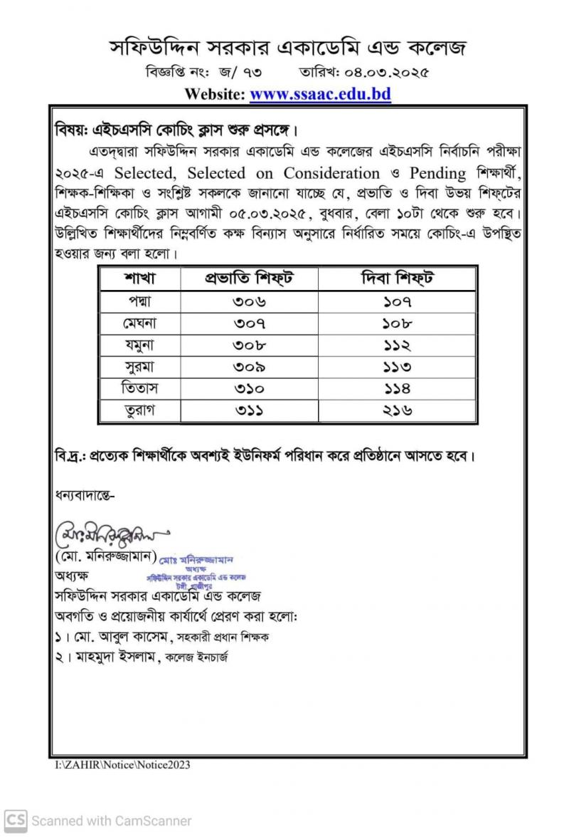 এইচএসসি কোচিং ক্লাস শুরু প্রসঙ্গে Published on Tuesday, March 4, 2025