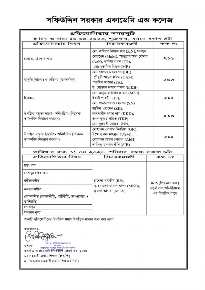 বার্ষিক সাহিত্য ও সাংস্কৃতিক প্রতিযোগিতা ২০২৬-এ অংশগ্রহণ প্রসঙ্গে। Published on Saturday, April 4, 2026