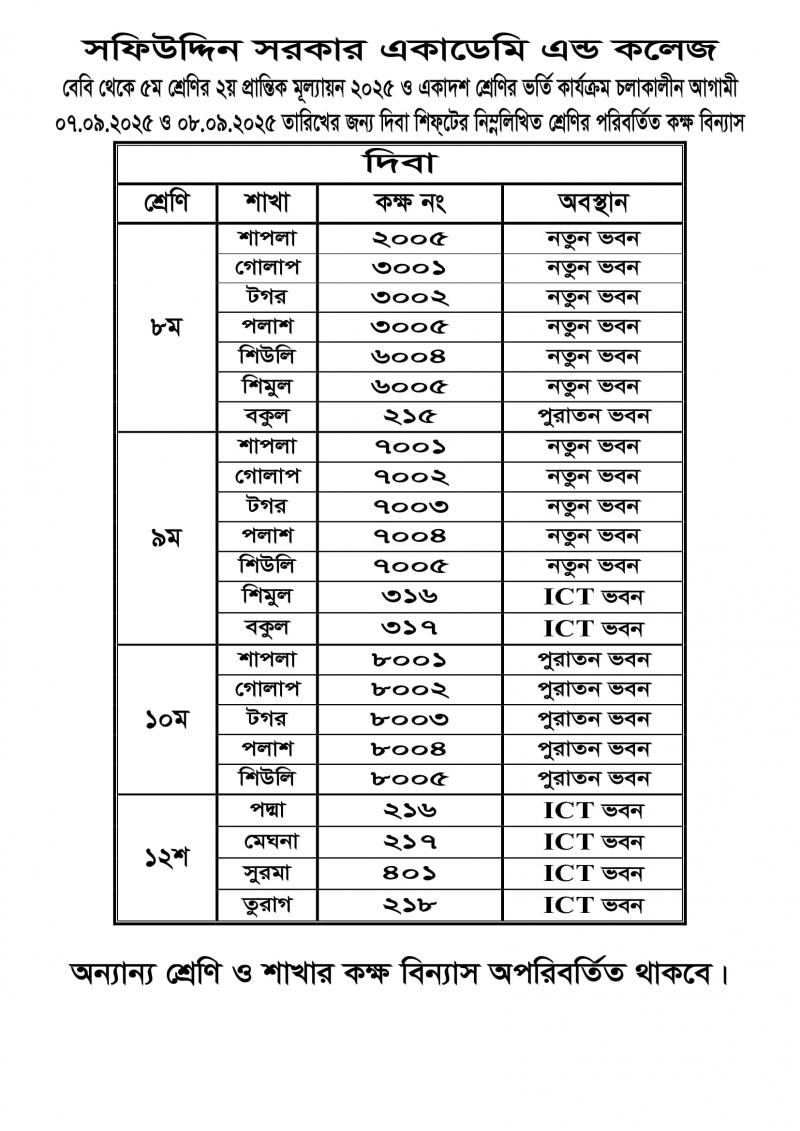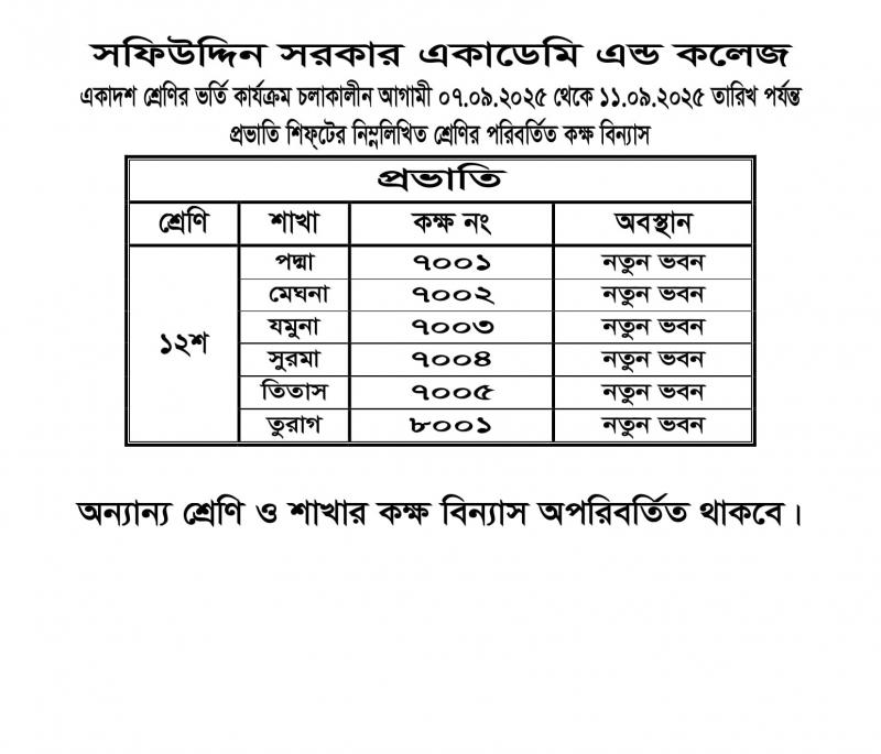 পরিবর্তিত কক্ষ বিন্যাস Published on Saturday, September 6, 2025