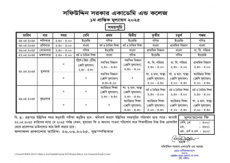 বেবি থেকে ৫ম শ্রেণির ১ম প্রান্তিক মূল্যায়ন ২০২৫ এর সময়সূচি Published on Wednesday, May 7, 2025